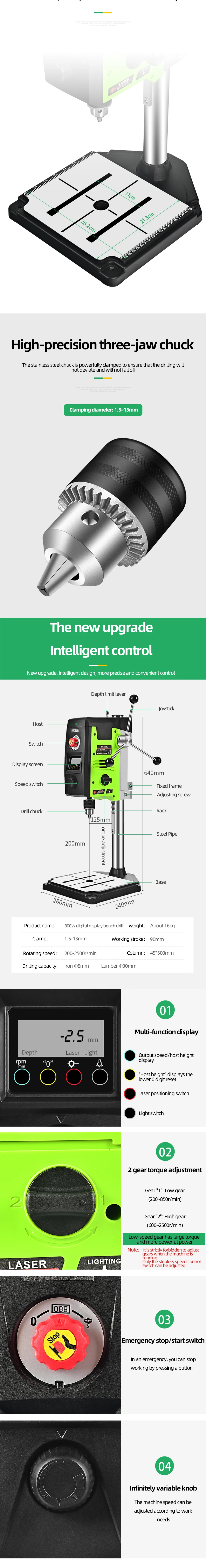 Настольный сверлильный пресс ALLSOME 800 Вт 6-Скоростной патрон-13 ...