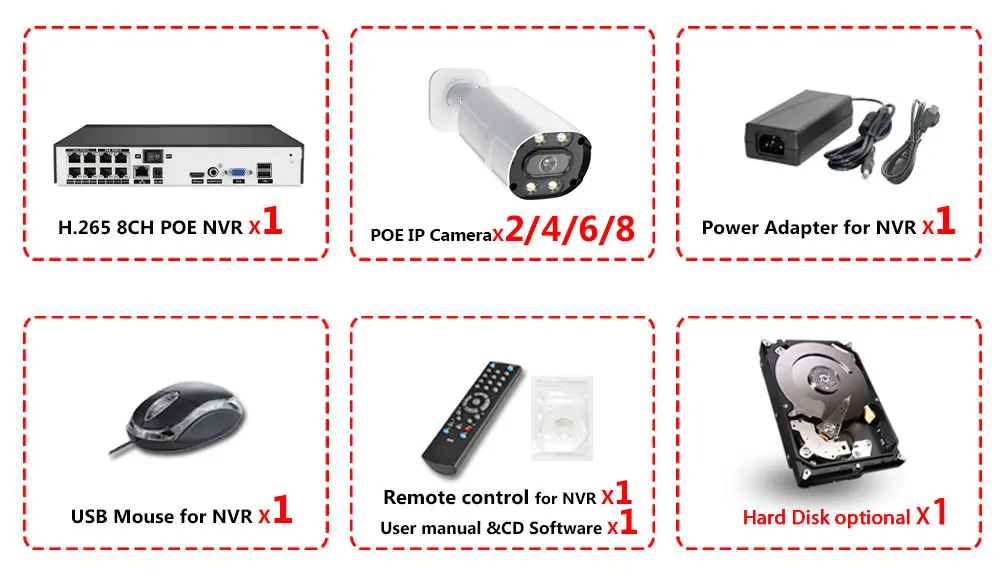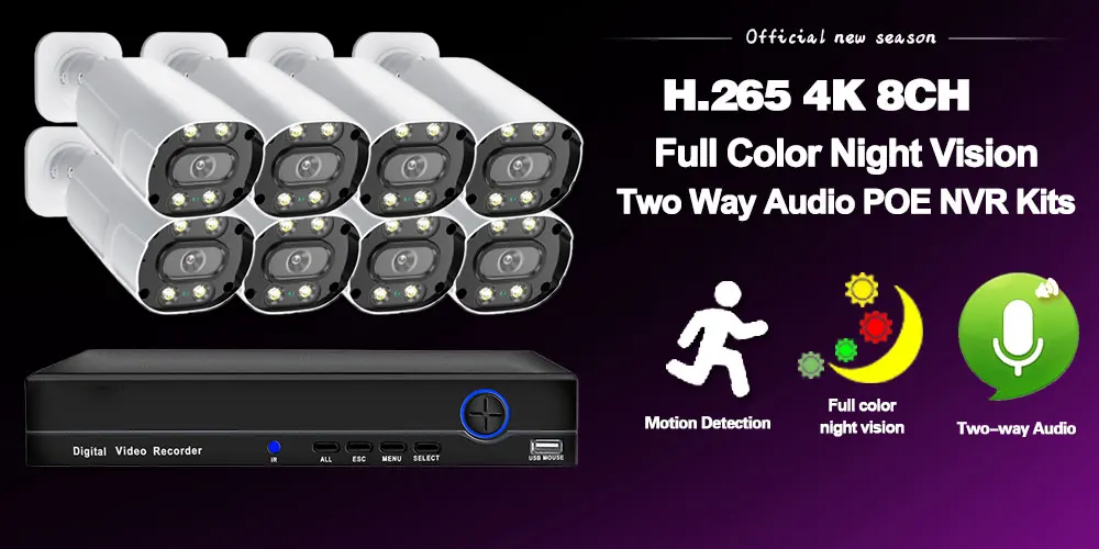 1. Все наши NVR и камеры являются реальными H.265 4K 8MP, NVR может поддерживать 8MP и 4K max, вы можете подключить 720p,1080p,3mp,4mp ,5mp, камеры 8mp & 4k с нашим POE NVR;