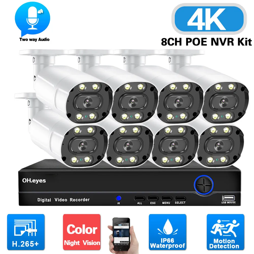 2/4/6/8 x HD POE IP камера 4K для дома и улицы ИК ночного видения Bullet всепогодные камеры;