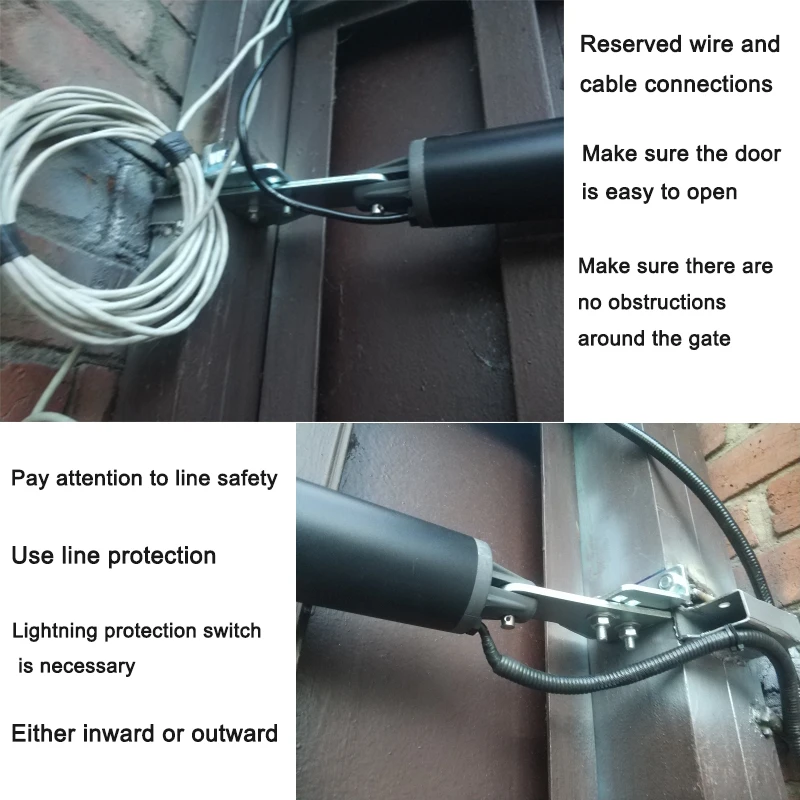 Замок ворот (дополнительные аксессуары)Для того, чтобы обеспечить безопасность двери и предотвратить выдувание двери сильным ветром, пожалуйста, используйте дополнительные дверные замки, Автоматические Дверные замки. Пульт дистанционного управления одновременно Откройте замок и ворота. Но rfid-замок DC12V, это для боковой двери, не то же время, чтобы открыть, это независимый, но источник питания блока управления может быть использован.