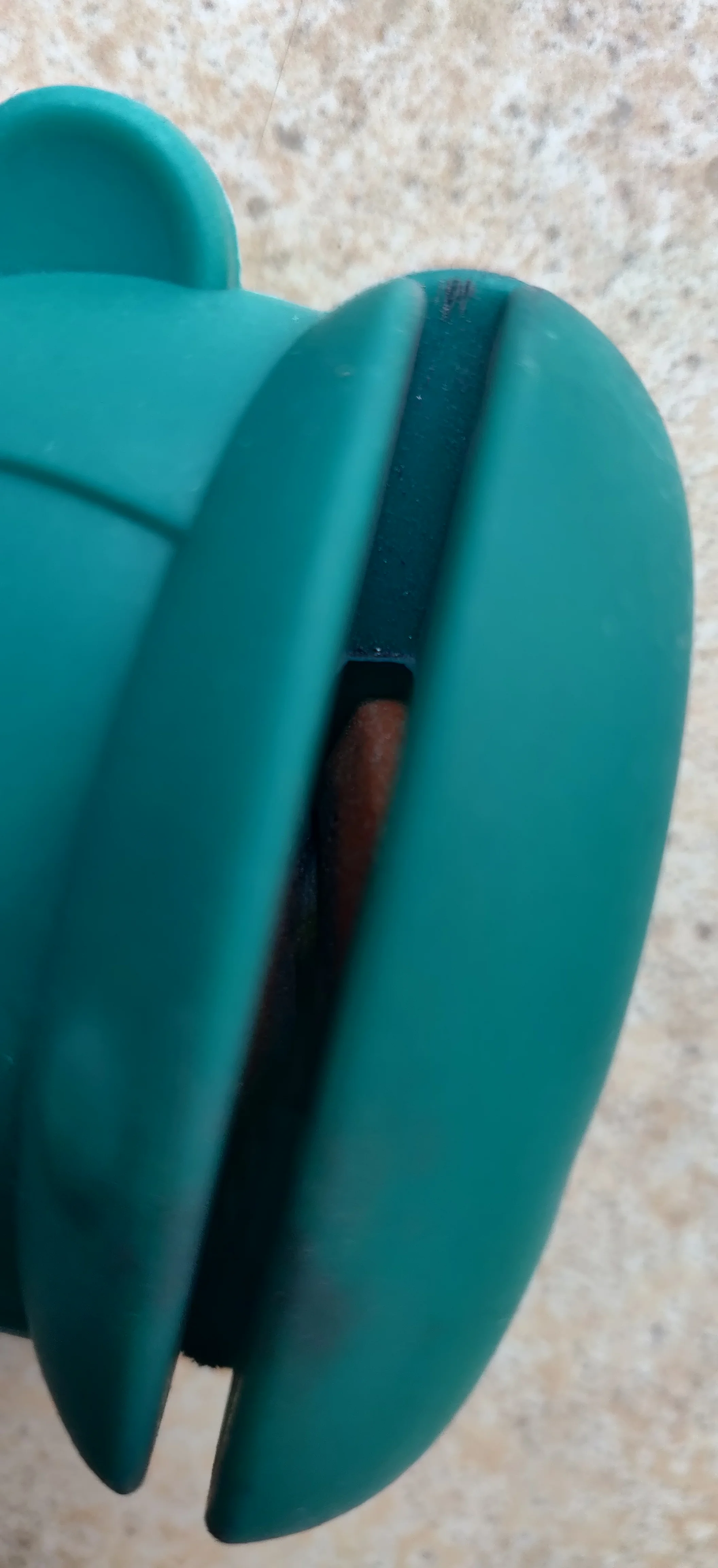 Долгая доставка - 2,5 месяца. Грешу на нерасторопность отечественной почты. Для домашнего использования вполне подходит. Позволяет быстро подточить ножи, не так, конечно, качественно, как сделал бы спец, но помидоры порезала отлично. На дне есть какие-то кружки, которые, возможно, предполагают противоскользящие накладки, однако их нет. В общем, как экстренный вариант, рекомендую. К тому же размер небольшой, можно хранить в ящике стола, много места не займёт.