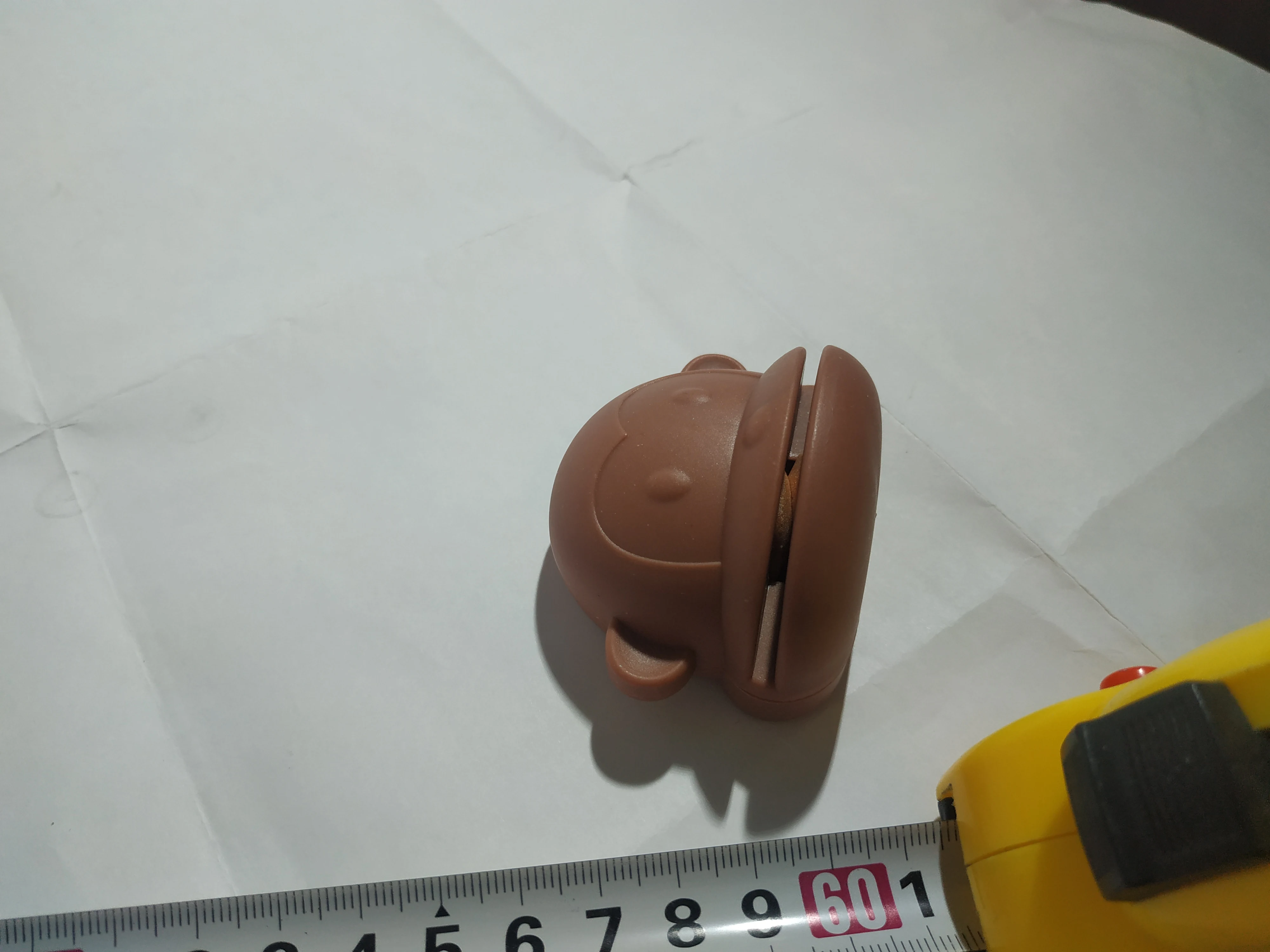 Точилку прислали на почту за два с половиной месяца. Обычная точилка в мультяшной форме. Стоила тридцать шесть. Размером меньше ладони ребенка. Описанию на сайте соответствует. Продавцу за описание 5 звезд.