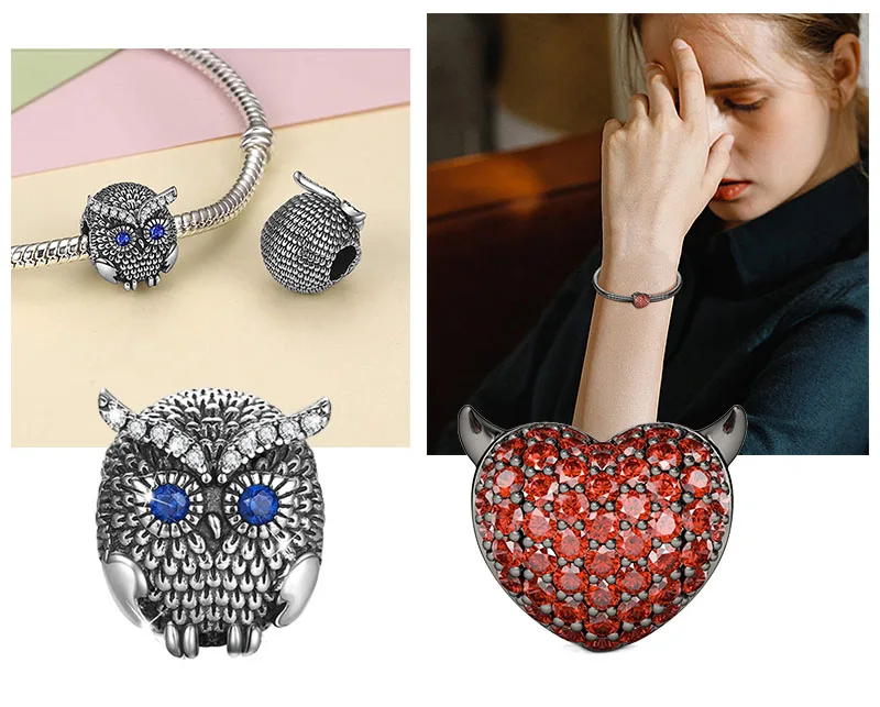 Готические 925 Серебряные бриллиантовые бусины Змея Подвески для браслета Pandora ювелирные изделия DIY