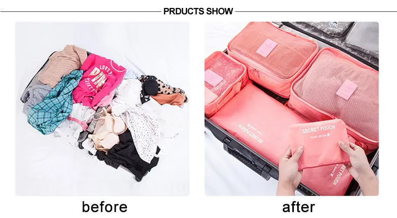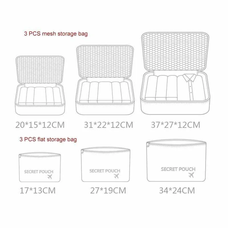 6 шт., сумки для путешествий, сумка для хранения багажа, кубический чемодан, органайзер, косметическое нижнее белье для хранения