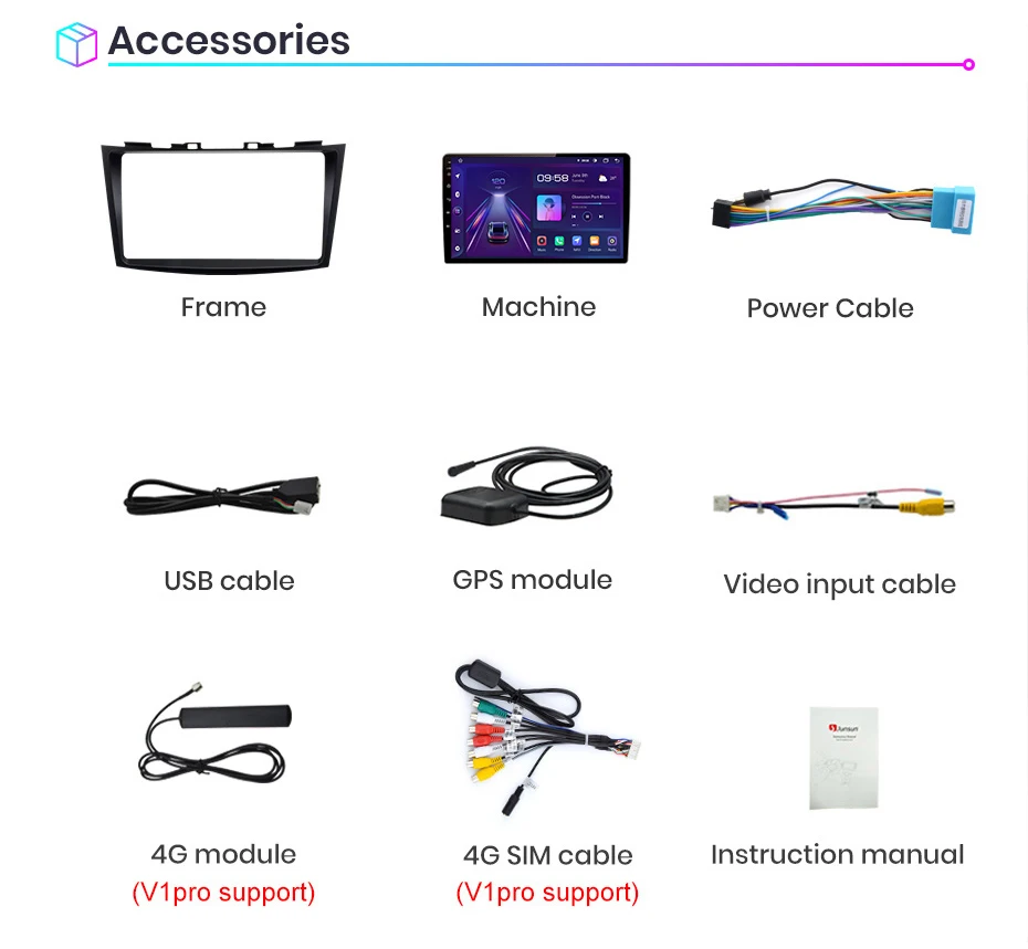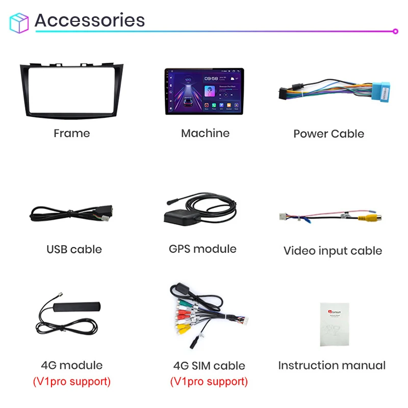 1. Штифт-штифт: Кабель питания Junsun radio' является штифтом для штифта, прост в установке;2. Встроенный Carplay/ Android Auto: Поддержка версии V1Pro, просто используйте кабель телефона, подключите его, стабильный и простой в использовании; (V1 поддерживает только Android Auto, но нужно покупать; V1C не поддерживает)3. Поддержка подголовника: только поддержка версии Junsun V1;