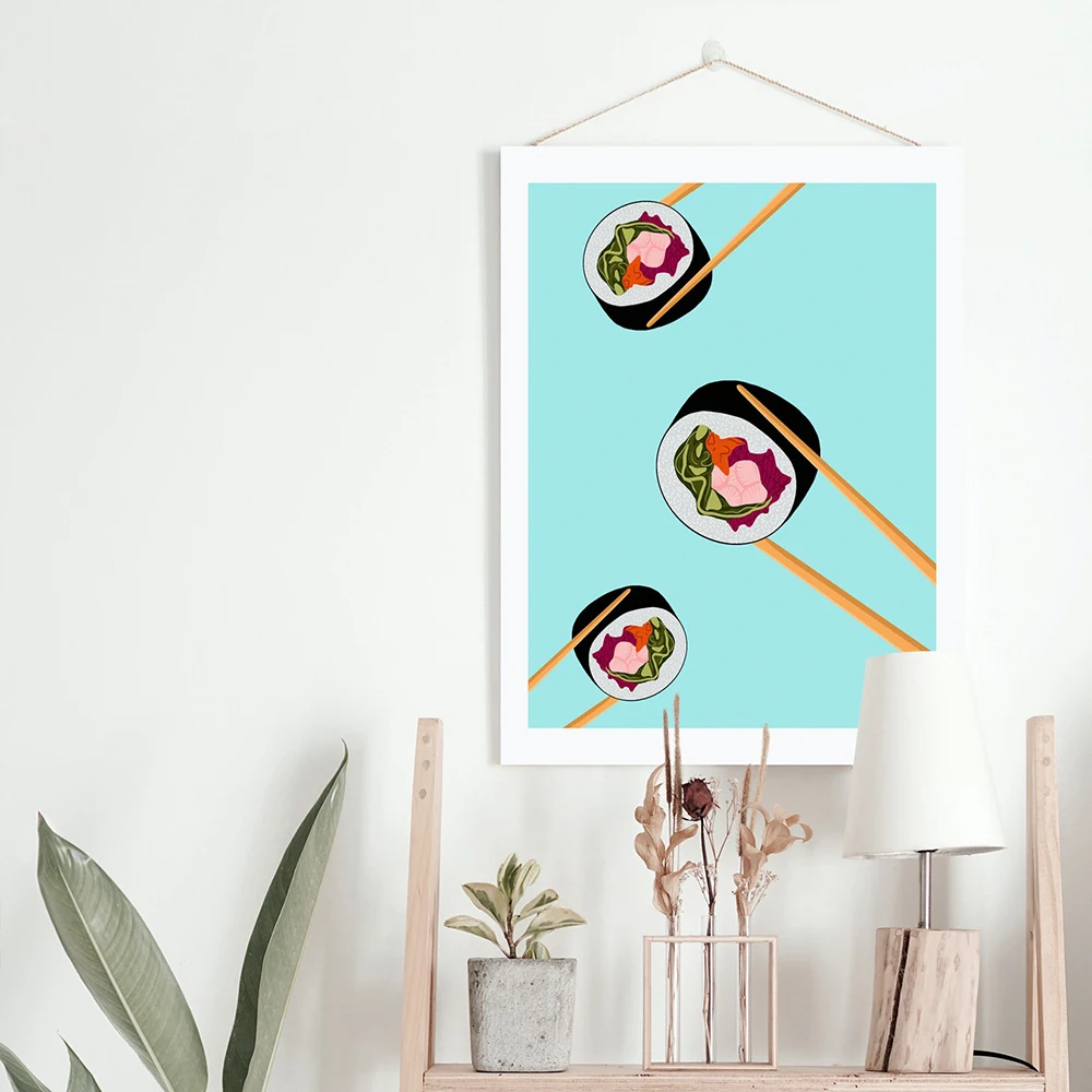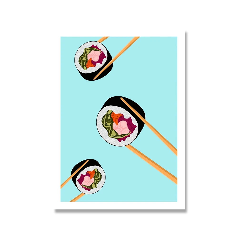 Настенные картины с японской едой, смешной постер на холсте с рисун...