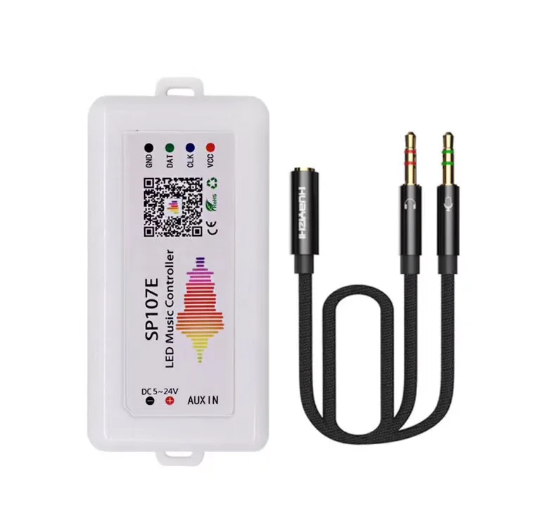 SP107E музыкальный светодиодный контроллер Blutooth Метод управления: приложение Входное напряжение: 5-24 В постоянного тока Пиксель: 960 Разъем: 3pin/4pin Расстояние управления: 30 м Вес изделия: 40 г; Размер изделия: 85 мм * 45 мм * 22 мм; Поддержка IC: WS2811 WS2812B WS2813 WS2815 WS2818 WS2801 SK6812 P943S P9411 P9413 TX1812 TX1813 SK6812-RGBW SM16703 UCS1903 TM1804 LPD6803 LPD8806 a188806 a8206 a208gs12