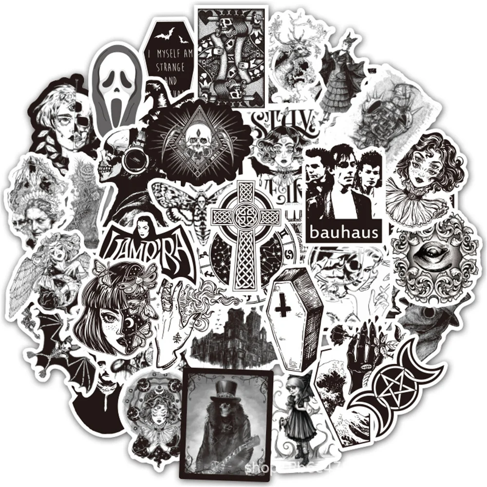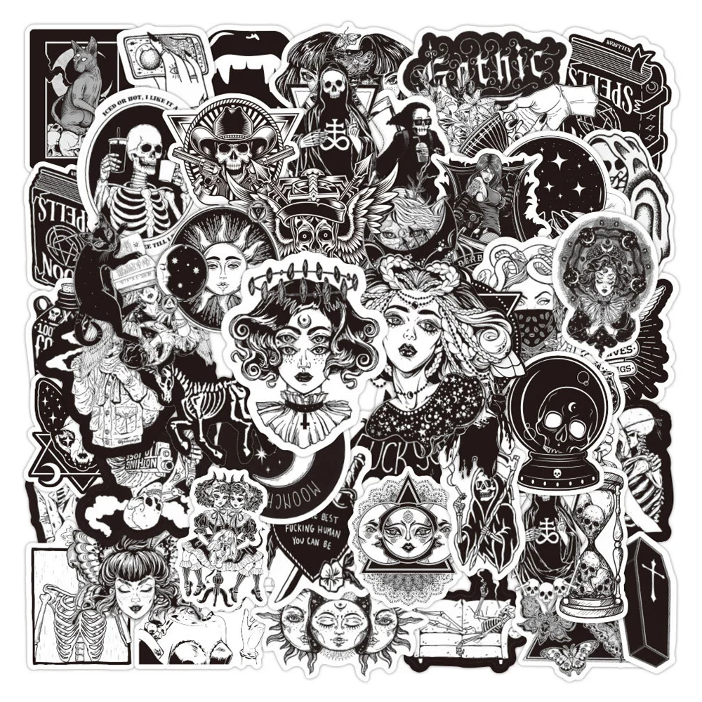 50 шт. черно-белые панковские стикеры в готическом стиле граффити на колесиках для скутеров холодильников водостойкие стикеры оптовая продажа