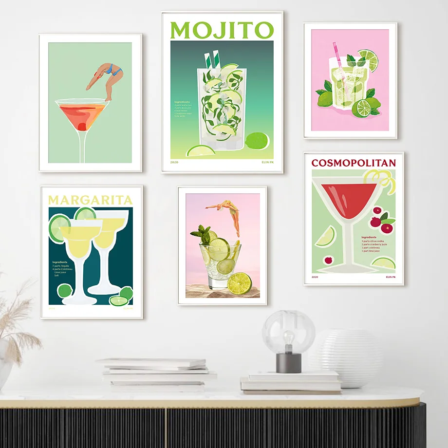 Коктейль Mojito сок напитки бар винтажная настенная Картина на холс...