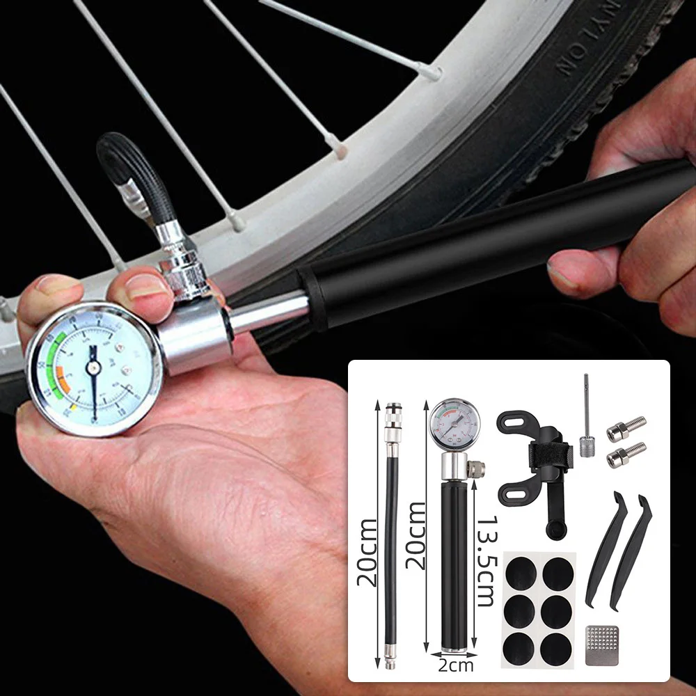 Насос велосипедный портативный с манометром, насос для шин с вилкой и шлангом, для дорожных и горных велосипедов