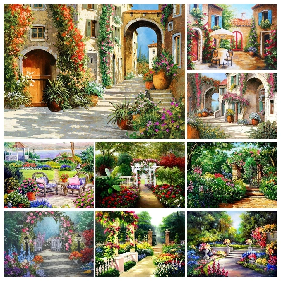Алмазная 5D картина для творчества, украшение для дома, полная вышивка, деревенский город, цветы, уличная мозаика, Набор для вышивки крестиком, подарок ручной работы
