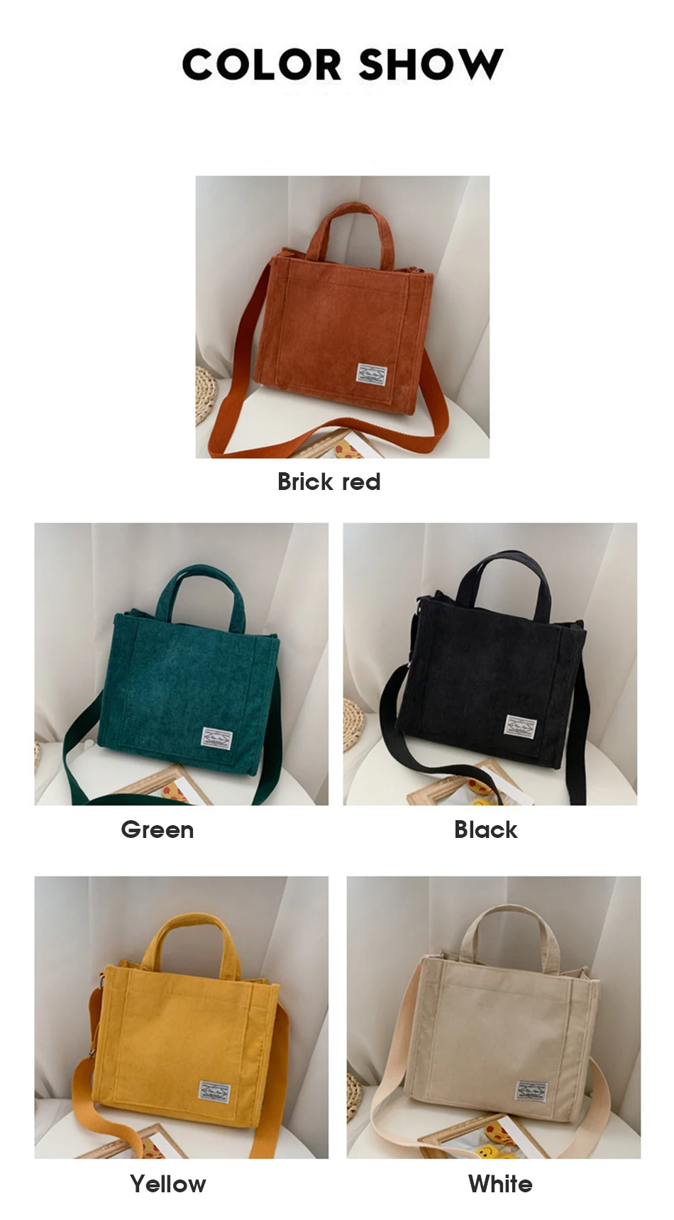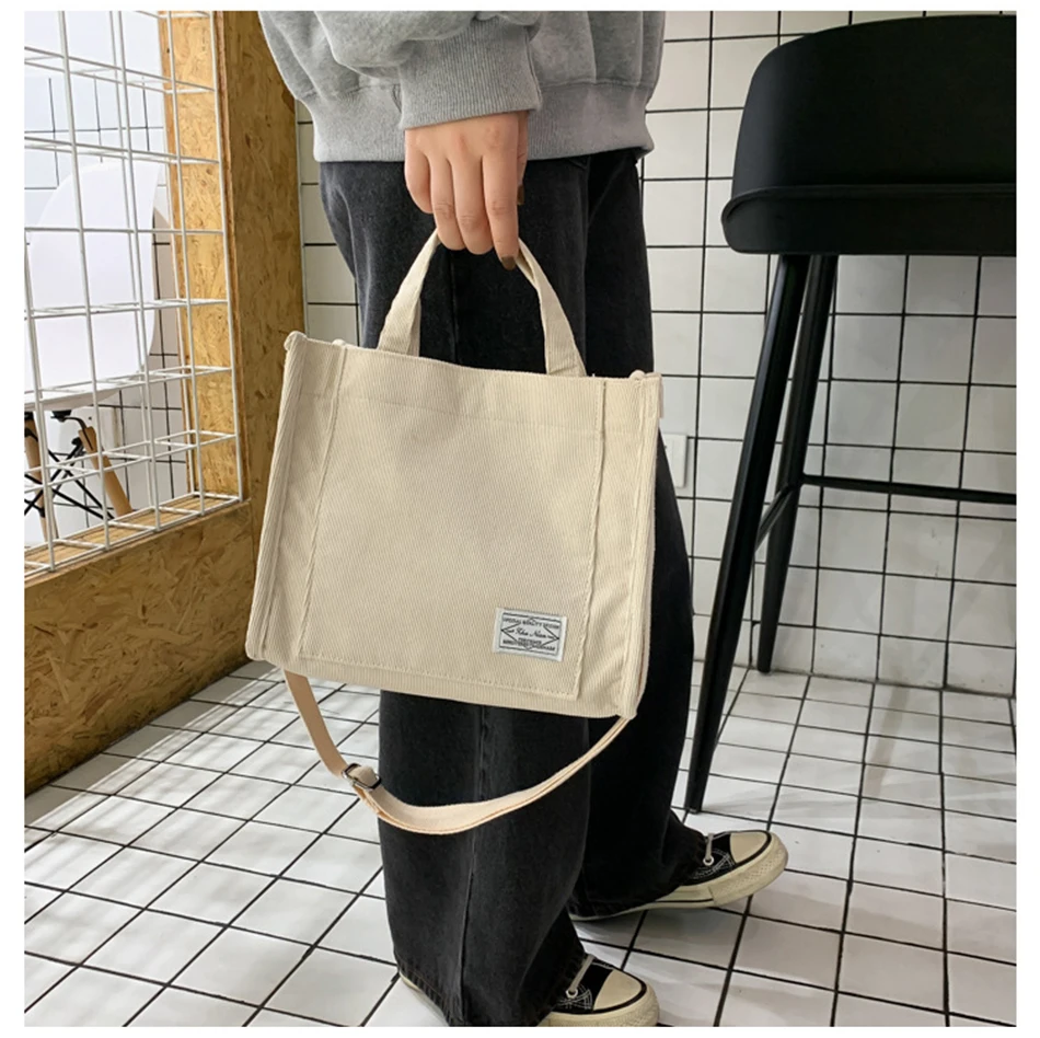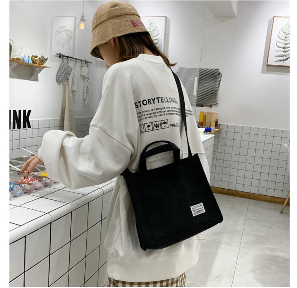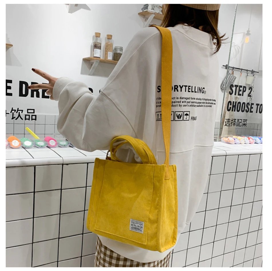 Вельветовая повседневная женская сумка-тоут через плечо, холщовые с...