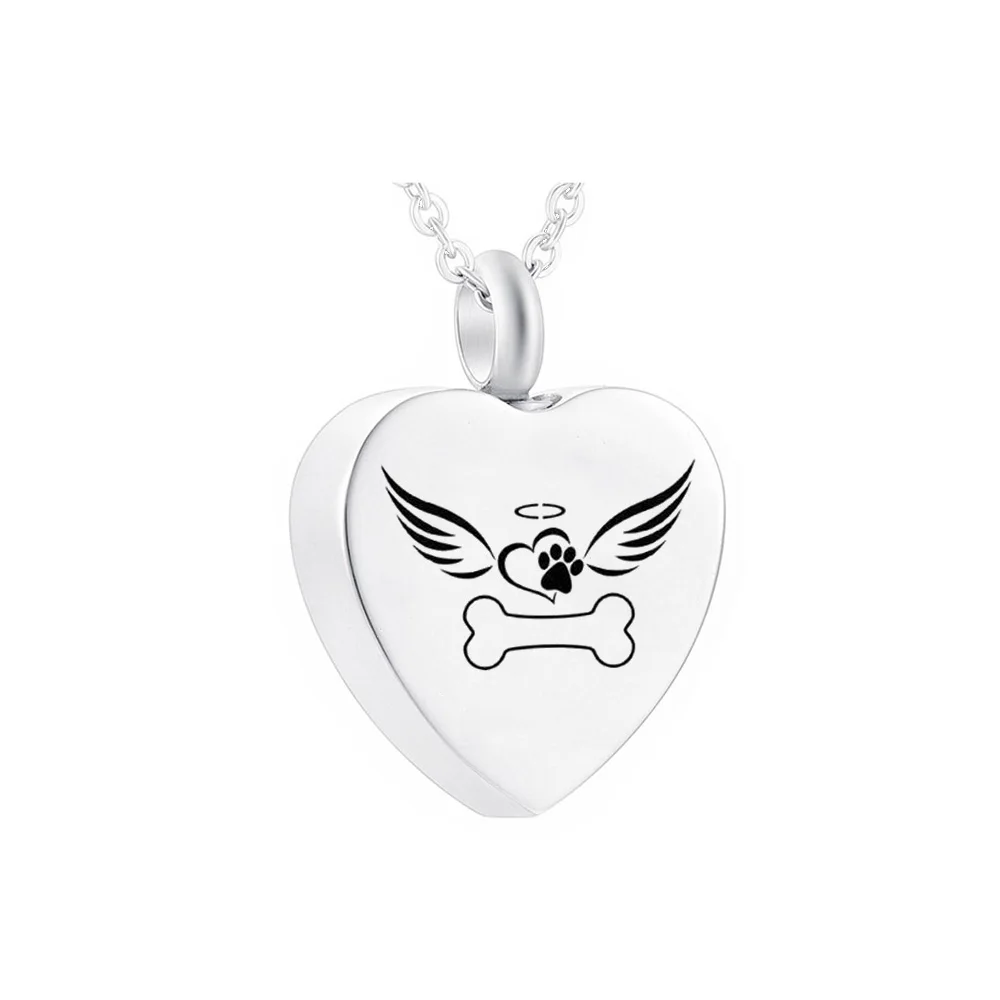 Серебряное сердце ангельские крылья подвеска урна на ожерелье собаки кремация ювелирные изделия памятный сувенир пепел урна