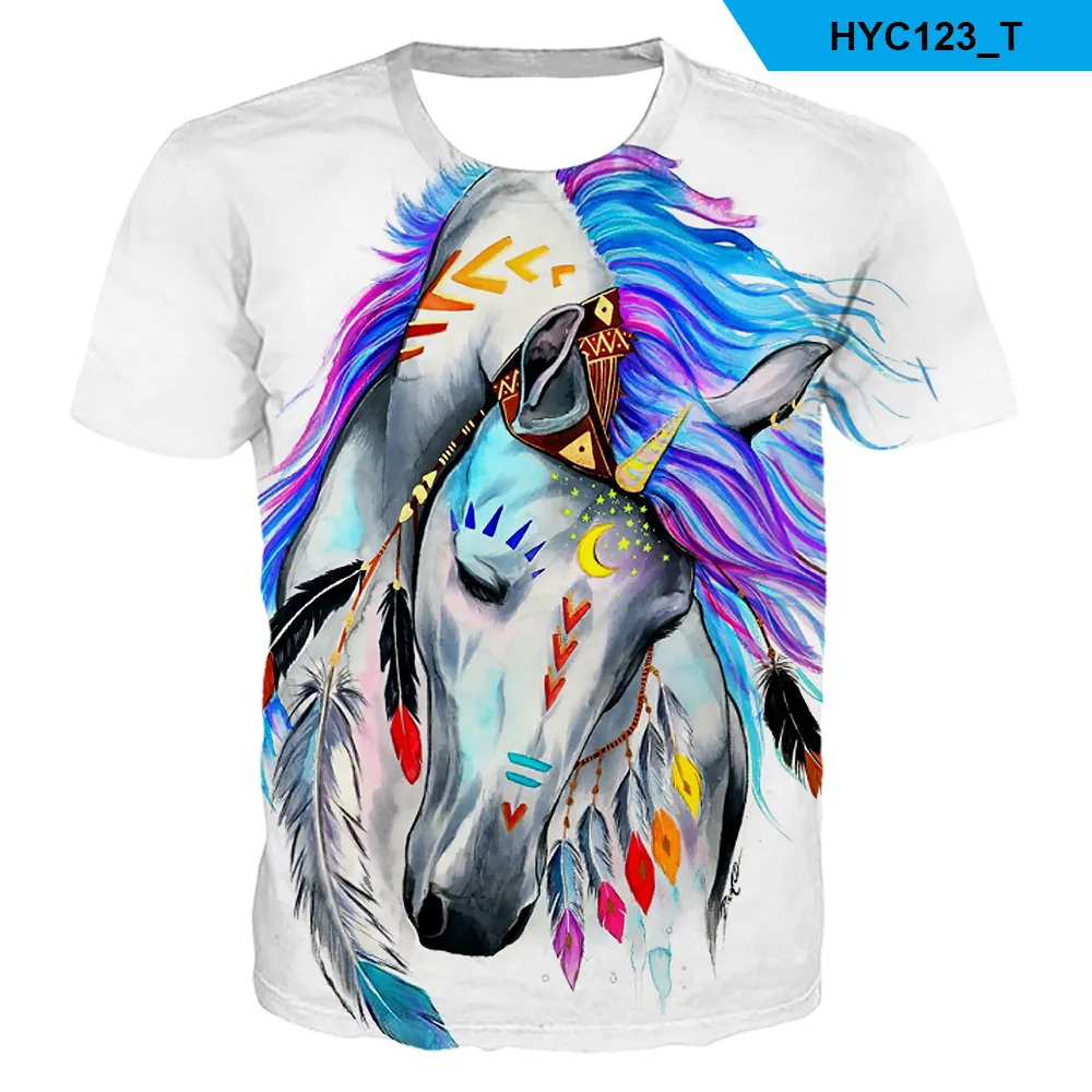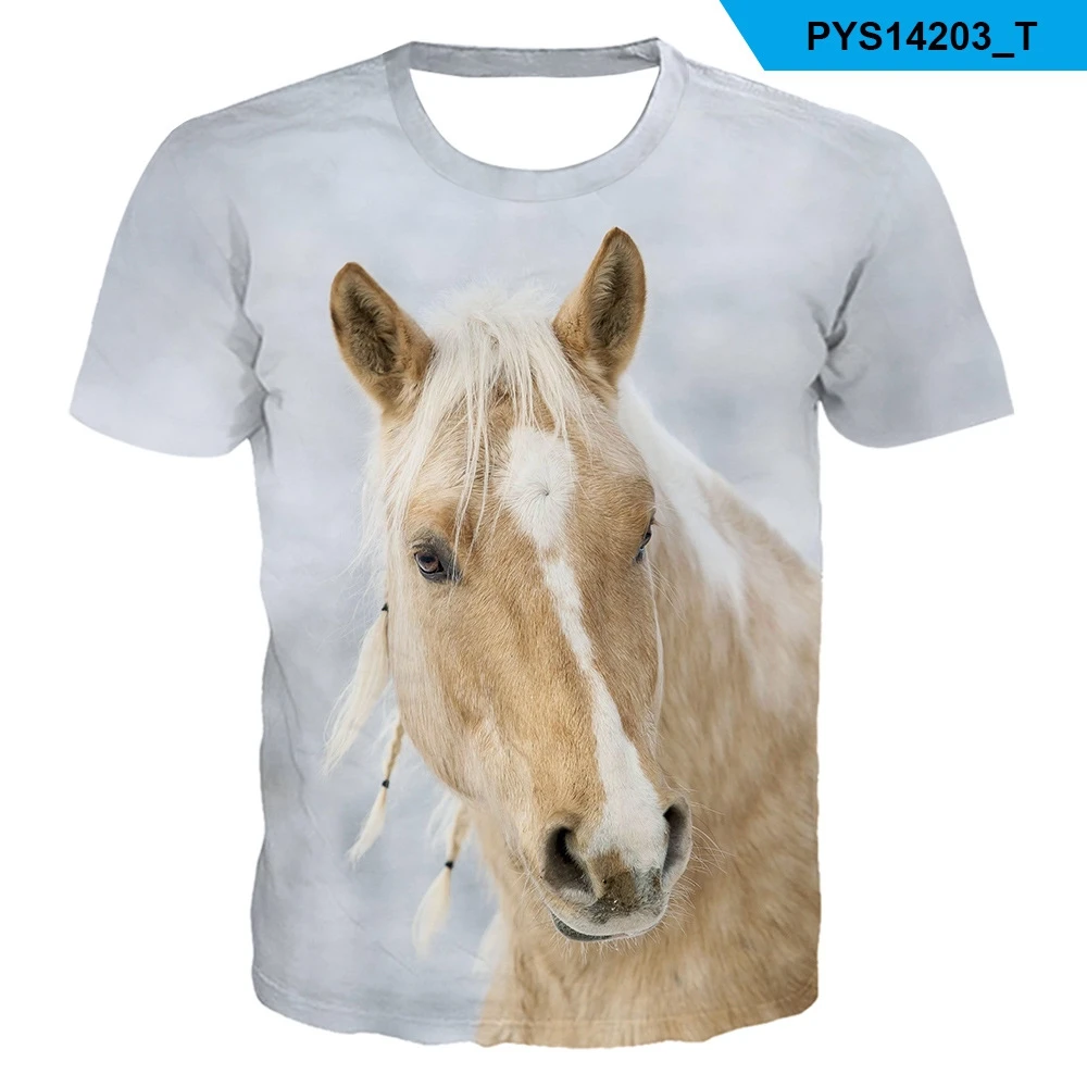 2021 Забавная детская футболка с мультяшным рисунком лошади, футболка для мальчиков с 3D рисунком животных, мужскиеженские повседневные топы, милая детская одежда, белые футболки