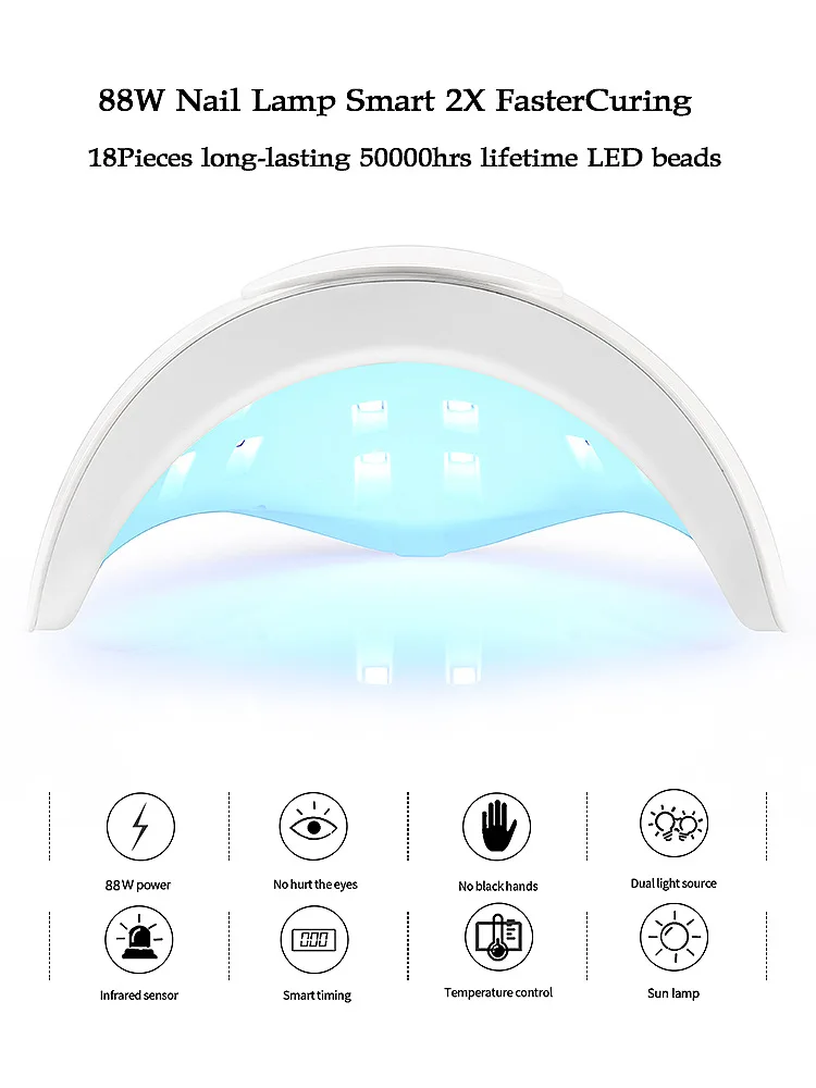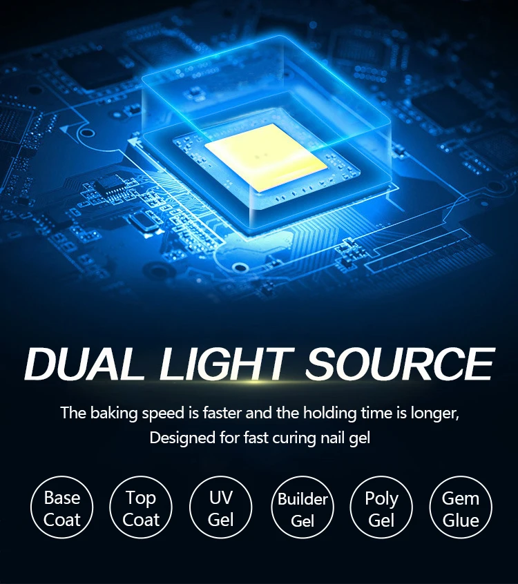 Бренд: YOKEFELLOWМощность: 72 ВтВход: 110-240 В, 50-60 ГцРазмер изделия: 235*200*80 мм4 режима: 10 / 30 / 60 / 99s (низкое тепловыделение)Особенности1. Гибкие варианты сушки, 4 предустановленных времени управления: 10s, 30s, 60s и 99s безболезненный (99s низкий тепловой режим), 10s более быстрая сушка.2. Интеллектуальный Автоматический Датчик: встроенный (на светильник). Руки (светильник).3. Лампа для ногтей также может быть вылечена от 5 ногтей или ногтей в то же время. Не нужно исцелять большой палец.4. Лечение всех типов гелей для ногтей, работает со всеми УФ-гель-лаками для ногтей и светодиодный Гель-лак для ногтей, включая УФ-гель для ногтей, светодиодный гель для ногтей, скульптурный гель для ногтей, стразы, драгоценные камни, клей и УФ-смола и т. Д.