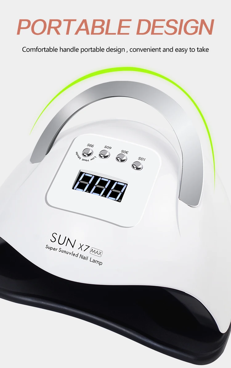 Бренд: YOKEFELLOWМодель: SUN X7 MAX4 режима: 10/30/60/99sБусины лампы: 57 УФ-светодиодовРазмер: 223*185*105 ммОсобенности1. Портативный дизайн ручки, Он удобен для переноски.2. Мощная лампа для сушки ногтей, может высушить Гель-лак всех типов.3. Поверхность краски и съемный туз, легко чистится.4. Автоматический датчик, включенный светильник, выключенный светильник, удобный для использования.