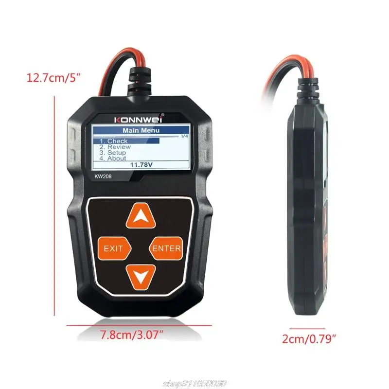 Автомобильный анализатор заряда аккумуляторов KW208, 12 В, 100-2000CCA