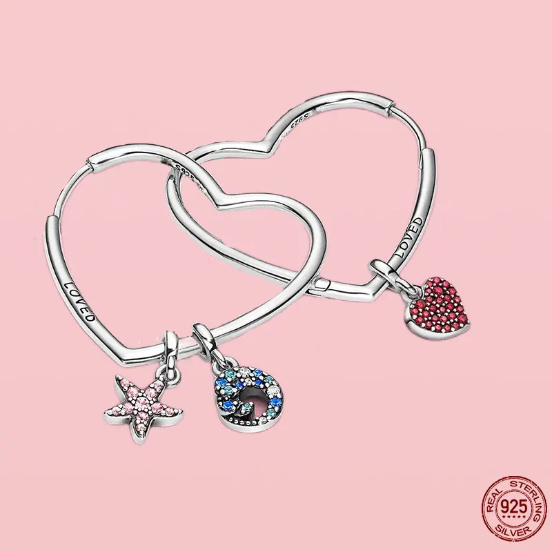 Женские серьги-кольца в виде сердца, серебряные асимметричные серьги-подвески