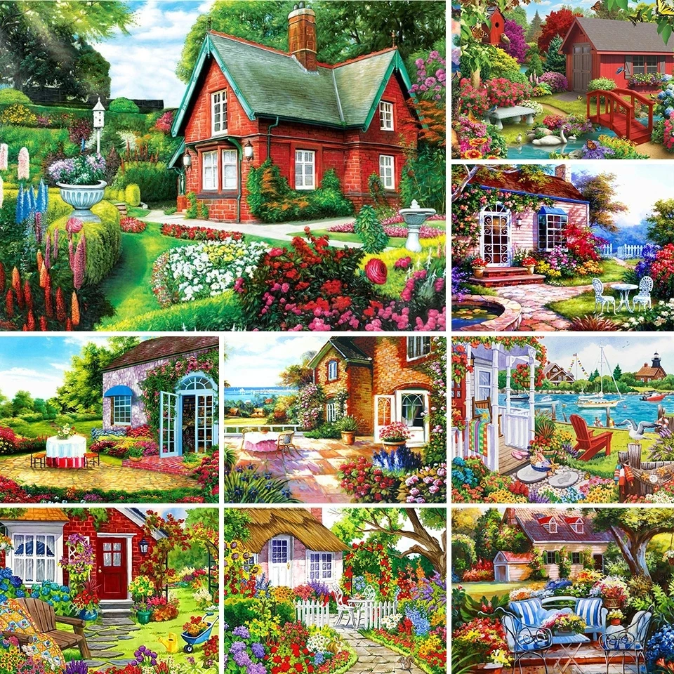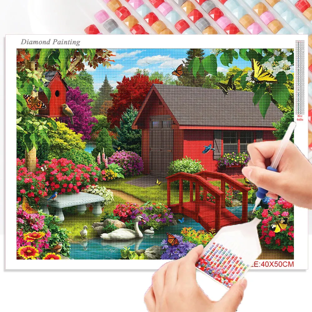 Алмазная живопись 5D "сделай сам", дом Бриллиантовая вышивка дереве...