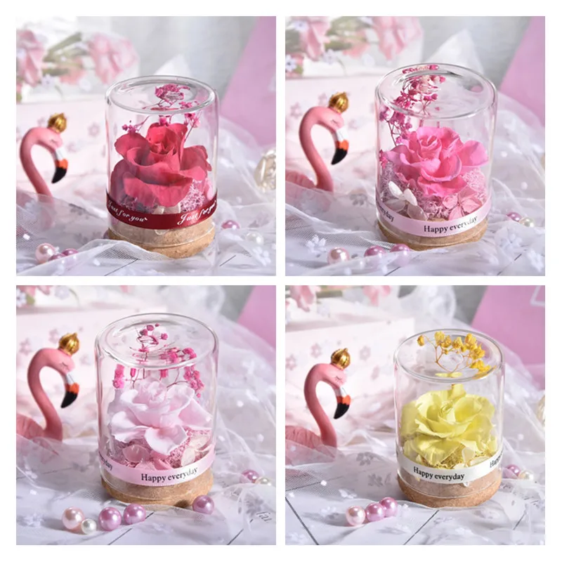 Вечный цветок стеклянная крышка вечная роза Искусственные цветы свадебное украшение Натуральные сушеные цветы подарок для подруги домашнее украшение