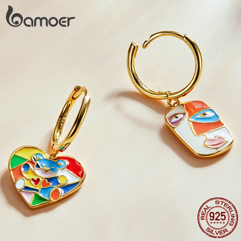 ❤[Описание] пряжки для ушей в форме сердца напечатаны поп-медведем, а масло для капель контрастного цвета оказывает сильное визуальное воздействие и представляет Поп-Арт.❤【Specification】Pop медведь Размеры: 2,4*1,3 см; Вес: 1,8 г.Поп уход за кожей лица Размеры: 2,6*1,9 см; Вес: 1,6 г.❤【Material】 925 пробы Серебряного и эмалевого процесса и покрытого золотом, эти серьги не содержат никель, не содержат свинца, не содержат кадмия, гипоаллергенны. Гарантия качества, приятный для кожи, удобный и удобный в носке, не вредный для здоровья.【Для подарка 】 1 пара сережек и 1 шт Изысканная Подарочная коробка, которая является идеальным подарком для мамы, дочери, дочери, тети, сестры, друзей.【BAMOER YOU】 чтобы обеспечить ваше полное удовлетворение, любые вопросы о продуктах BAMOER, просто не стесняйтесь связаться с нами, мы постараемся сделать все возможное, чтобы помочь вам.