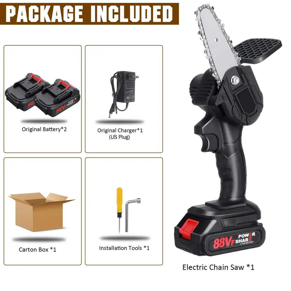 4-дюймовая электрическая пила, бензопила 88 в, Беспроводная для деревообработки, садовые инструменты с 2 батареями, индикатор, ручной инструмент для резки дерева