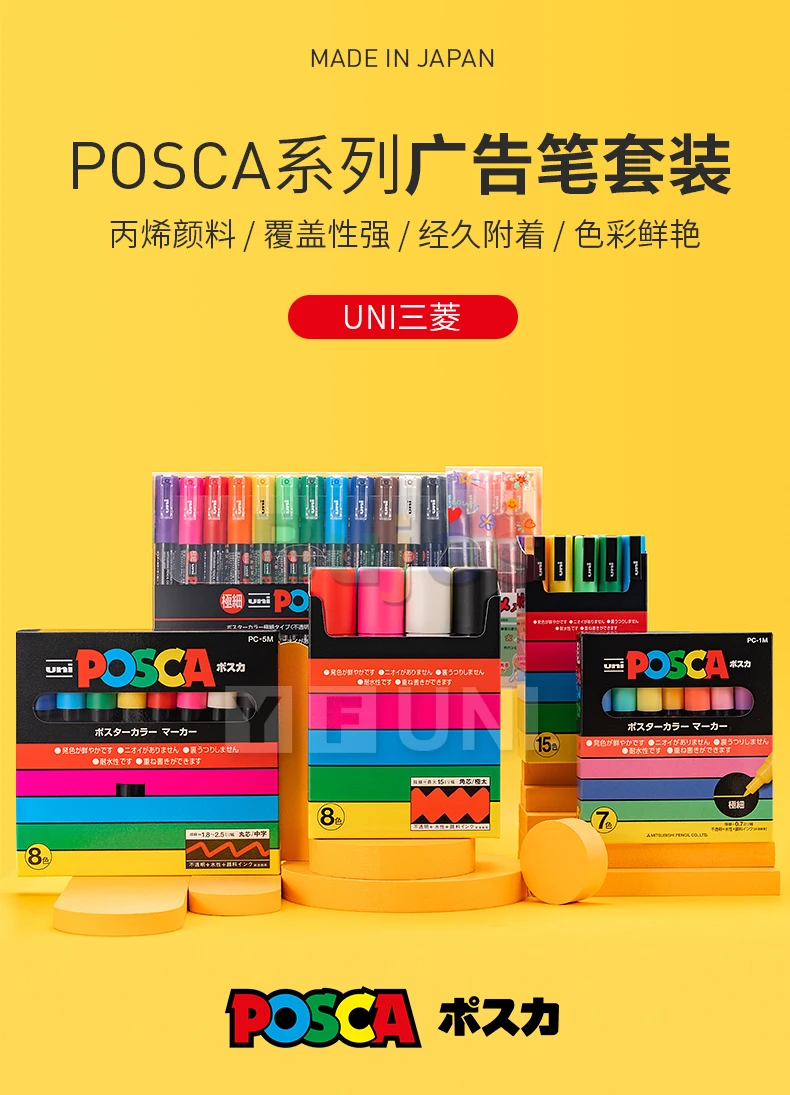 Японская серия Uni Posca, фотосессия3 м5 м, поп-постер, рекламная ручка, маркер, Mitsubishi PC серия, акриловый маркер в коробке, без привкуса