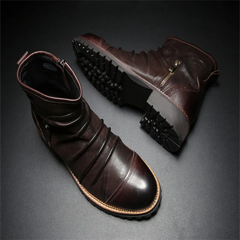 Мужские ботинки в британском стиле, Нескользящие Роскошные простые ботинки на молнии, водонепроницаемая Массажная удобная обувь Martin с высоким берцем в стиле ретро, весна-осень