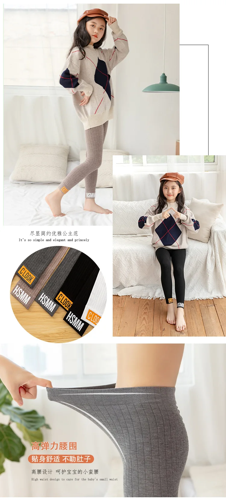 Леггинсы для девочек; Детские штаны; Детские леггинсы в рубчик с буквенным принтом; Хлопковые брюки; Повседневная детская одежда; Эластичная модель 2021 года; Сезон весна-осень