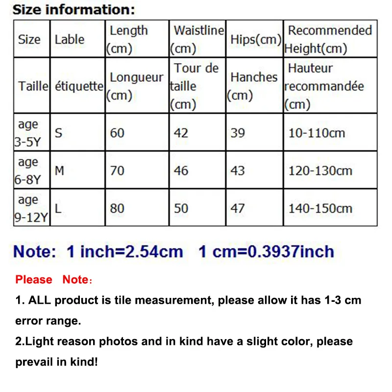 2. Пожалуйста, при покупке выбирайте размер в соответствии с таблицей размеров. Если вы не понимаете их, пожалуйста, свяжитесь с нами. Сообщите нам вес и рост ваших детей. Мы поможем вам сделать лучший выбор.