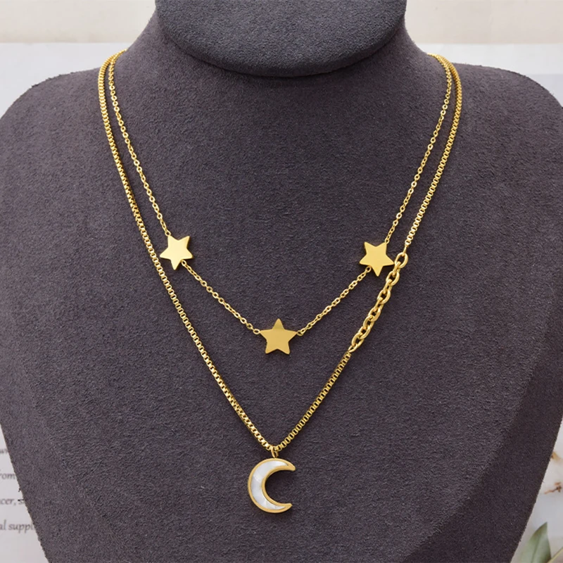 Двухслойный чокер XIYANIKE из нержавеющей стали 316L золотого цвета со звездочками для женщин, модные ювелирные украшения в подарок на вечеринку 2021