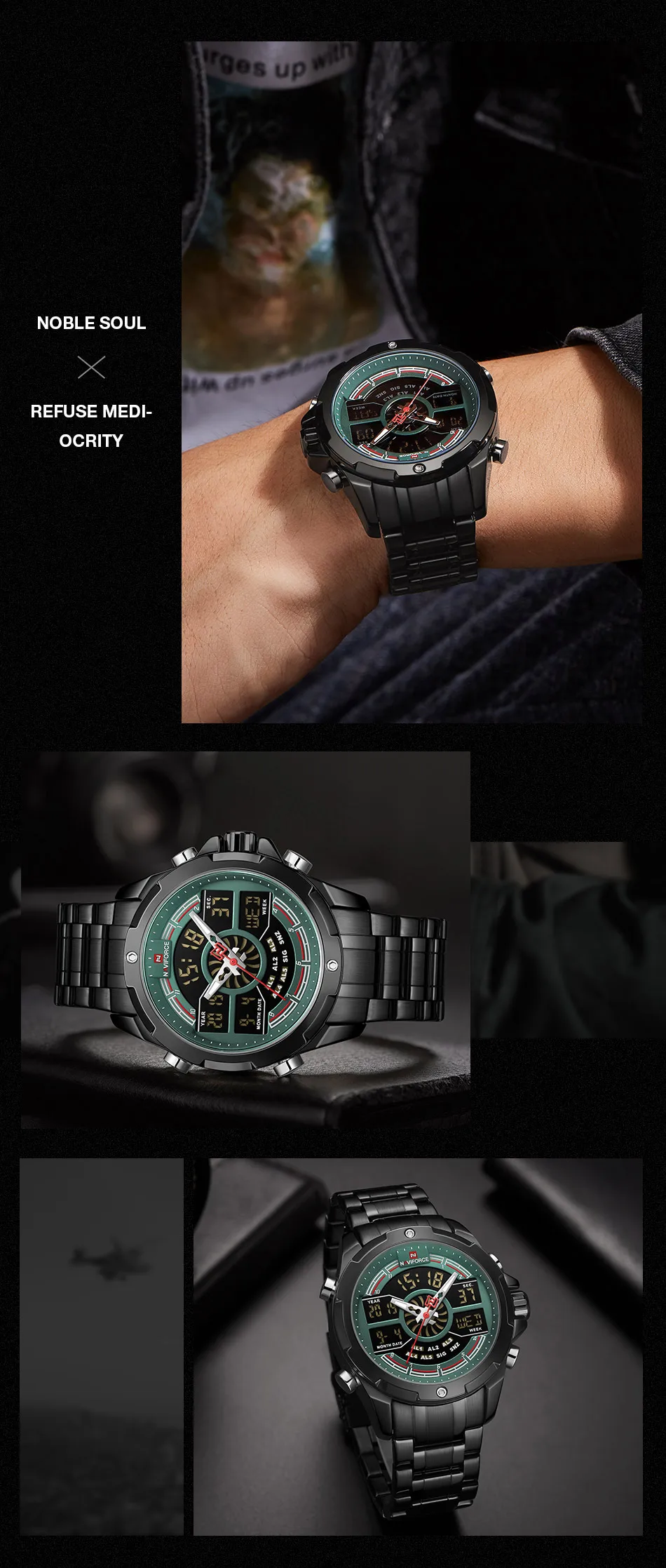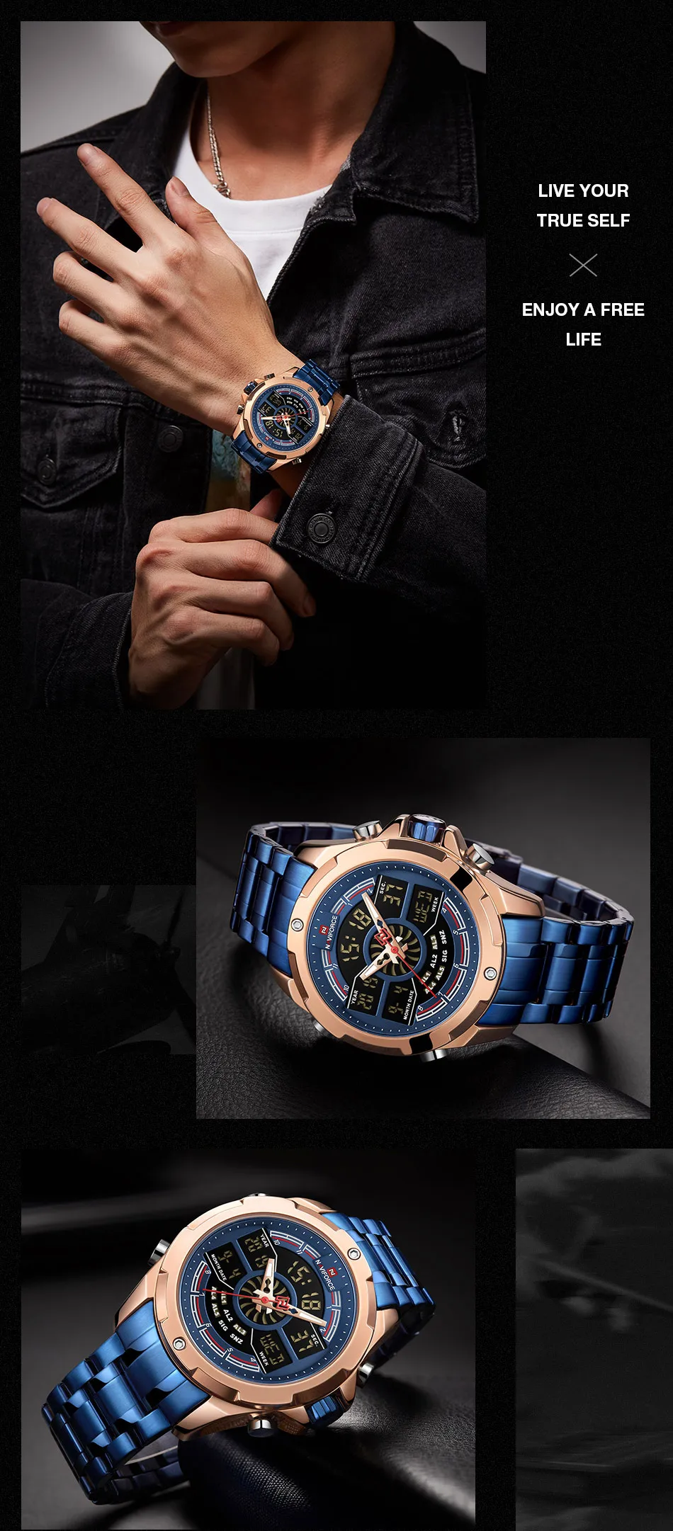 Часы NAVIFORCE мужские из нержавеющей стали, водонепроницаемые, с большим циферблатом