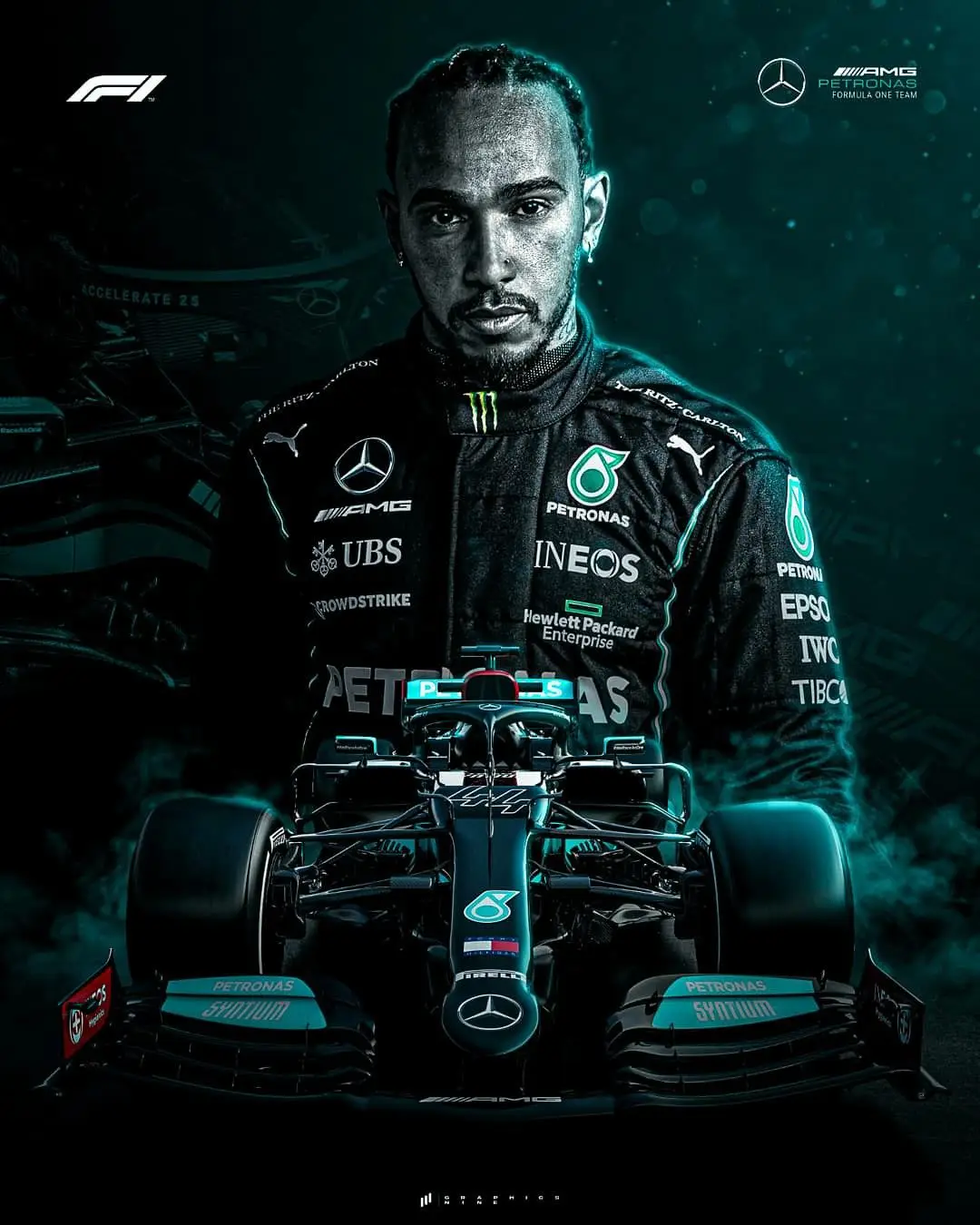 F1 Racer F1 Formula World постер с чемпионом Racing Льюиса F1 коман...