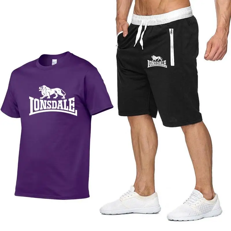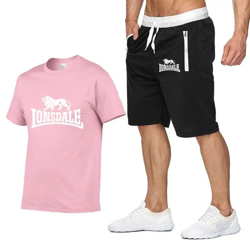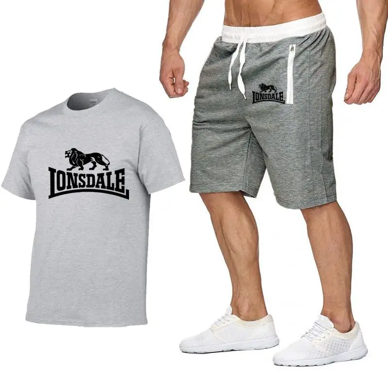 Мужской летний комплект спортивной одежды LONSDALE, футболка с коротким рукавом, короткие брюки, новые модные мужские повседневные комплекты, шорты, футболки, 2 предмета