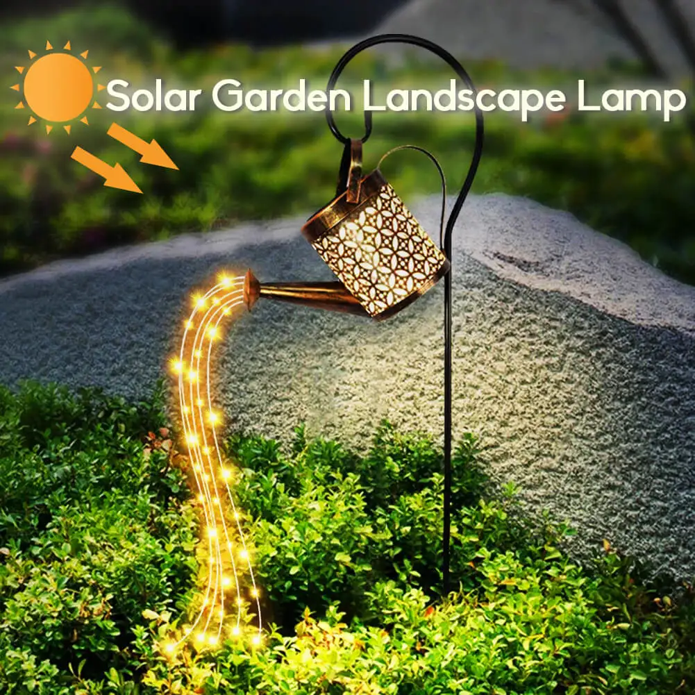 Кованая Железная выдалбливающаяся лампа металлическая Солнечная поливная банка брызгает Сказочный светильник светодиодный наружный сад водонепроницаемое освещение для душевой светильник украшение
