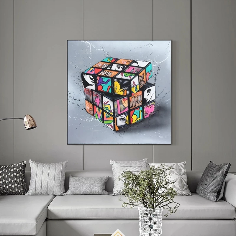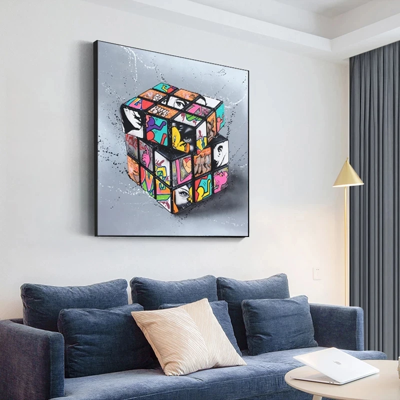 Волшебные блоки граффити Искусство Холст Картина Кубик Рубика плакаты и принты уличная Настенная картина для гостиной Декор