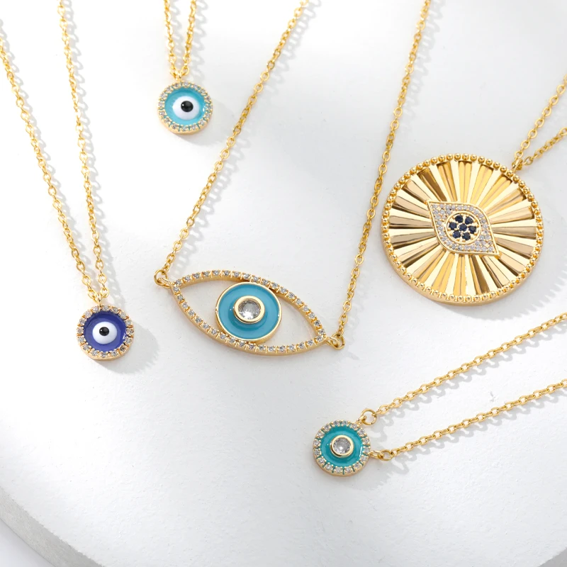 Циркониевое ожерелье от сглаза для женщин, винтажное ожерелье с кулоном из золотистого кристалла, ожерелье из нержавеющей стали, турецкие ювелирные изделия, рождественский подарок