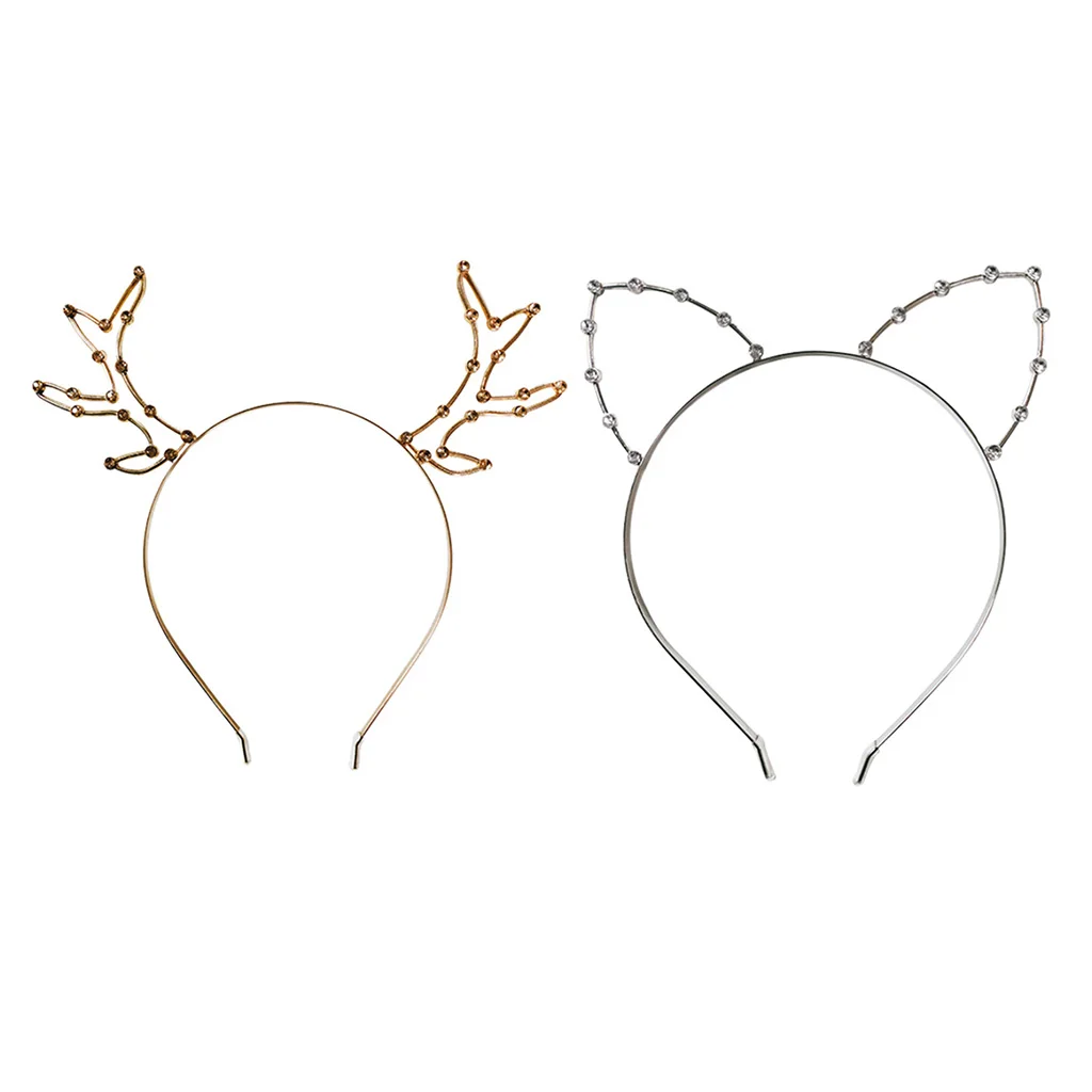 Повязка на голову с хрустальными кошачьими ушками, повязка для волос с оленями, ободок для волос из сплава, реквизит на Хэллоуин и Рождество, тематический костюм