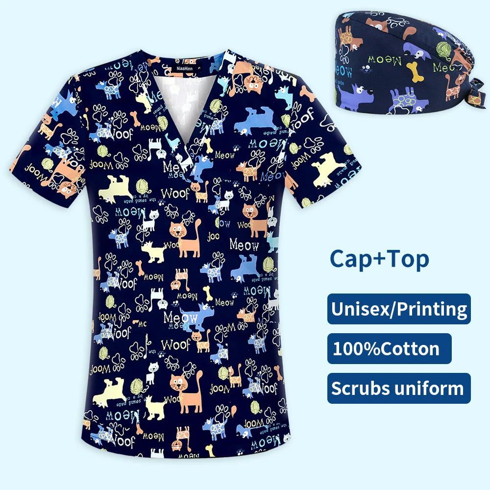 Одежда для хирургии с принтом животных, хлопковая медицинская одежд...