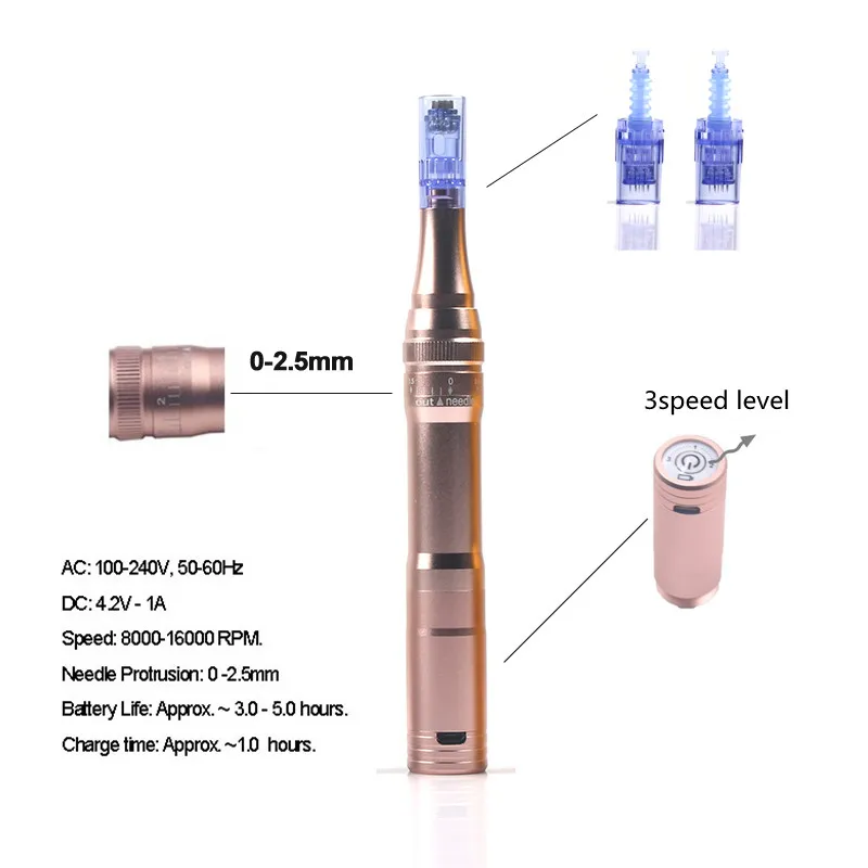 Wilress розовое золото мезоручка с микроиглами 3 уровня уход за кожей косметическое устройство тату иглы мезотерапия