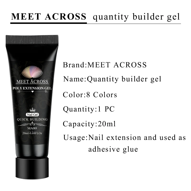 MEET ACROSS Poly UV гель для маникюра 20 мл гель для наращивания Розовый Цвет гель для ногтей для дизайна ногтей строительный гель для дизайна ногтей эмаль