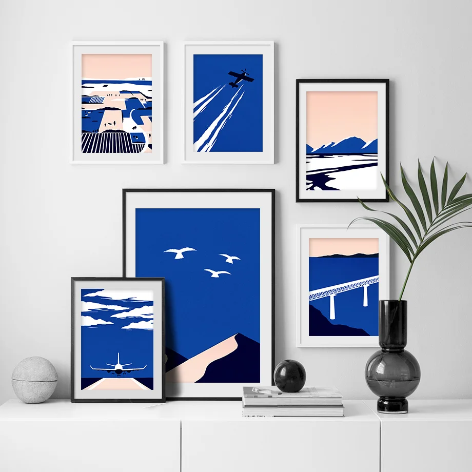 Картина на холсте, минималистичный комикс, снег, гора, самолёт, пейзаж, настенные художественные плакаты и печать, настенные картины для декора гостиной