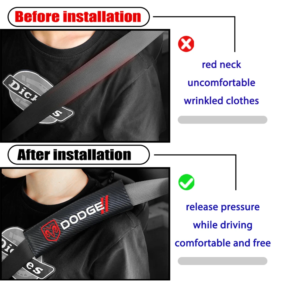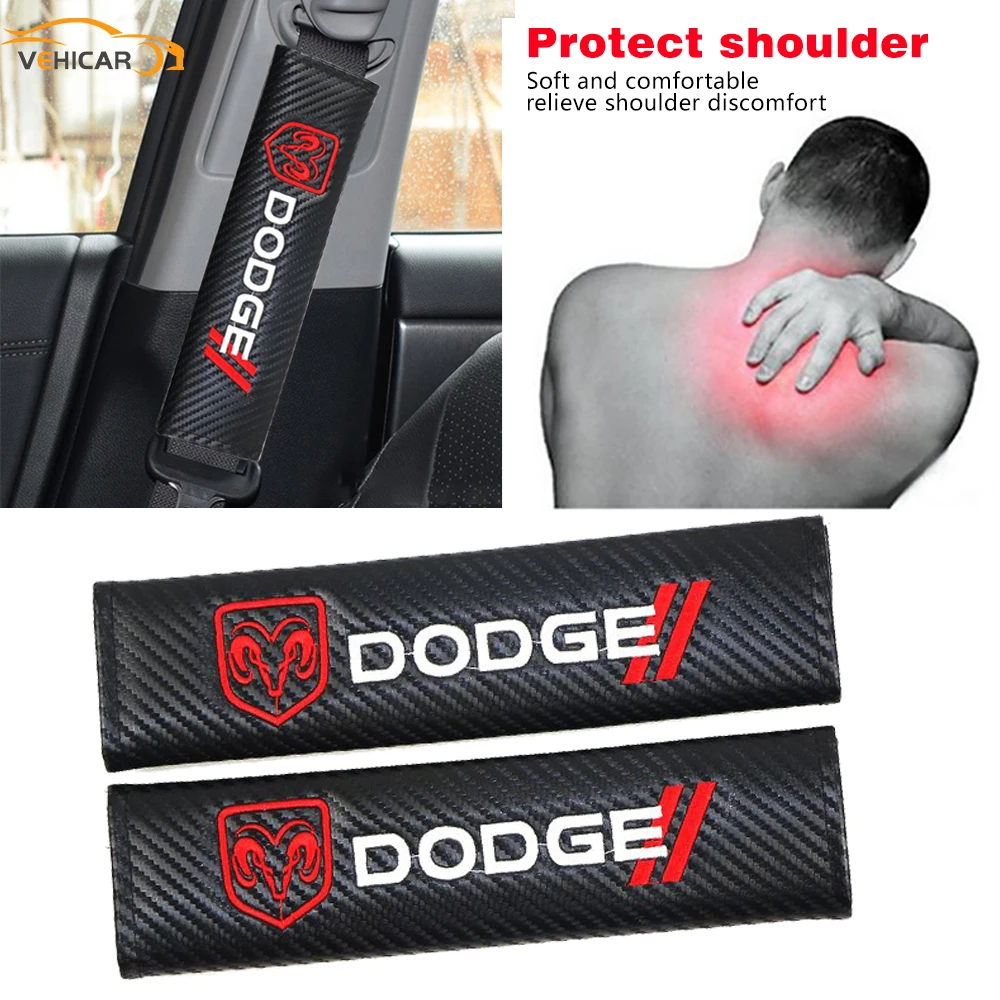VEHICAR 2 шт. Накладка для ремня безопасности автомобиля из углеродного волокна протектор плеча водителя аксессуары для автомобиля DODGE Автомобильный логотип