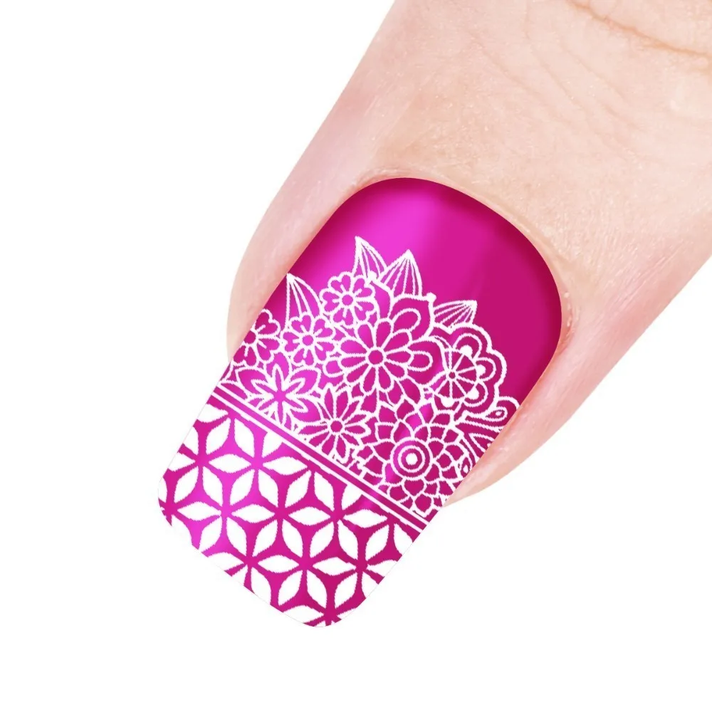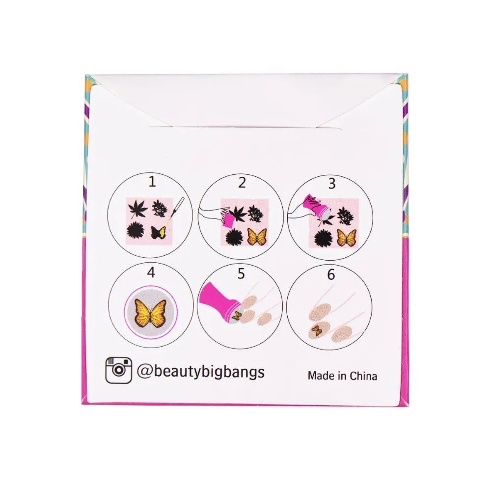 Характеристика:1. Нанесите базовый слой или обычный лак на ноготь.2. Нанесите лак для ногтей на желаемое изображение в пластине. (Рекомендуется: Используйте однотонный лак для ногтей, чтобы текстура была толще, чем другие лаки для ногтей)3. Сделайте скребок наклоном на 45 градусов и быстро и сильно Отрежьте чрезмерный лак изнутри и снаружи.4. Немедленно нажмите на стемпер с нежным подвижным движением, чтобы подобрать дизайн. Изображение переносится на штамп.5. Наклейте изображение на ноготь с нежным подвижным движением. Изображение переносится на ваш ноготь.6. Повторите вышеуказанные шаги для всех ваших ногтей.7. После штамповки ногтей нанесите верхнее покрытие для длительного ношения.