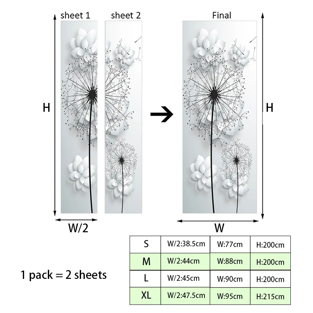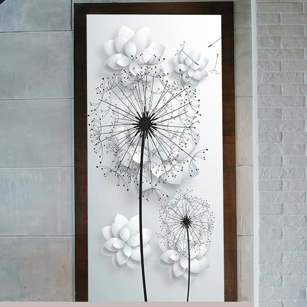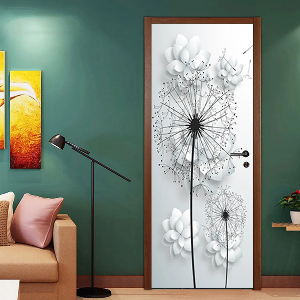3D Dandelion Flowers PVC Door Sticker Self Adhesive Wallpaper On the Door DIY Renovation Waterproof Poster Bedroom Home Decor