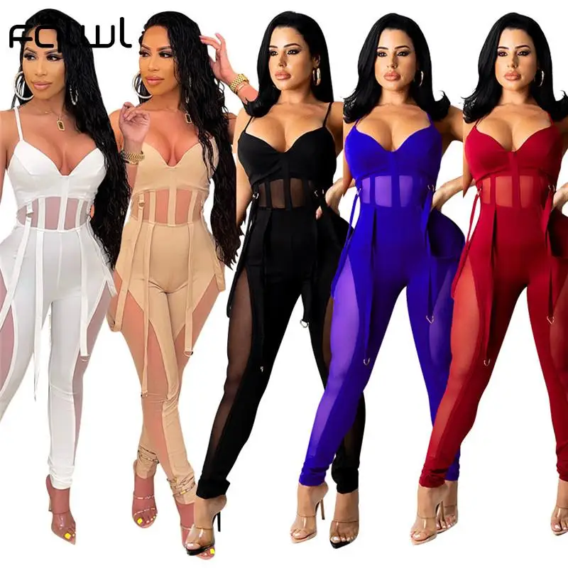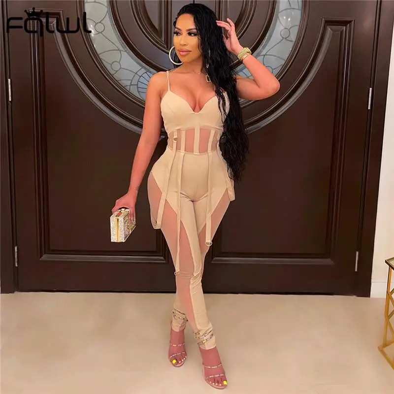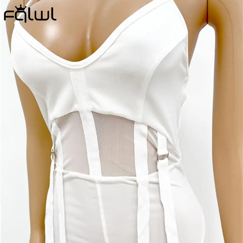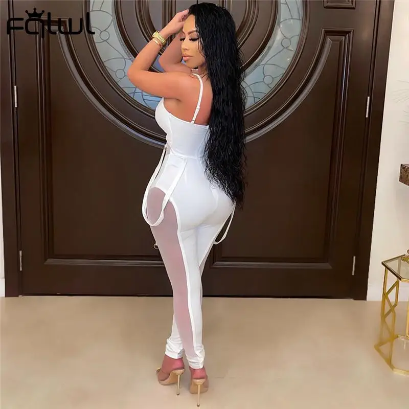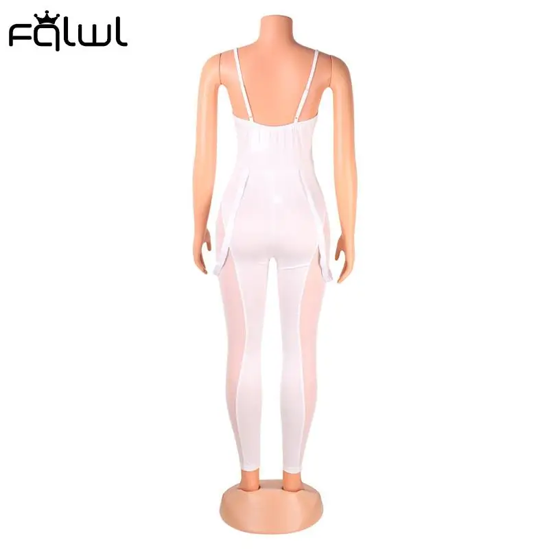 Женский комбинезон на бретелях FQLWL, летний прозрачный комбинезон белого цвета, без рукавов, обтягивающий комбинезон с вырезом на спине