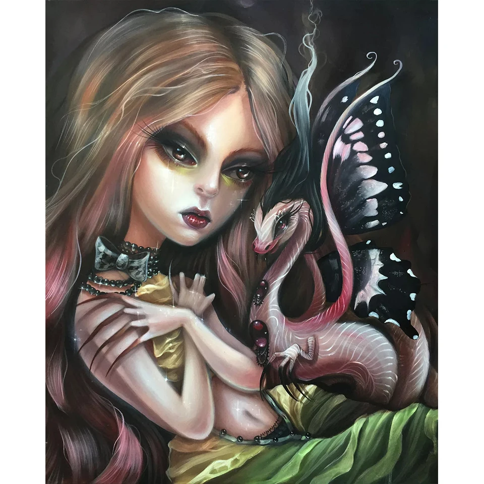 Мультфильм фантазия Дракон Девушка 5D diy Алмазная Картина Вышивка крестом полная дрель сказочная Алмазная вышивка Мозаика Искусство домашний декор