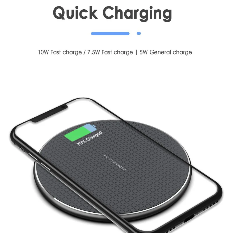 Примечания к покупке1. Перед покупкой вам необходимо проверить, поддерживает ли ваш мобильный телефон беспроводную зарядку, а выходное напряжение составляет 5 Вт/7,5 Вт/10 Вт, вы можете использовать его.2. Если ваш мобильный телефон не поддерживает беспроводную зарядку, сначала проверьте, поддерживает ли ваш мобильный телефон 5 Вт/7,5 Вт/10 Вт.3. Если ваш мобильный телефон не поддерживает беспроводную зарядку, вы можете использовать его с приемником беспроводного зарядного устройства.ОсобенностиБолее быстрая Беспроводная зарядка:Режим быстрой зарядки 10 Вт совместим только с Samsung Galaxy S9/S9 Plus/S8/S8 Plus/Note 9/Note 8/Note 5/S6 Edge/S7/S7 Edge и другие товары серии Galaxy Note и Galaxy S,Быстрая зарядка 7,5 Вт совместима с iPhone 11/11pro/11pro max/X/XS MAX/XR, iPhone8/8 plus, (Другие устройства с поддержкой Qi будут заряжать со стандартной скоростью беспроводной зарядки).Многофункциональная Защита: будущий дизайн делает его ультратонким, без раздражающих звуковых сигналов, без запаха пластика, даже сдержанный светодиодный индикатор не вызывает помех ночью. Противоскользящее резиновое основание предотвращает скольжение устройства во время зарядки.ХарактеристикиМатериал: АБС-пластик + алюминиевый сплавДлина линии передачи данных: 1 мВходное напряжение: 5 В/2 А, 9 В/1,67 АВыходная мощность: 5 Вт/7,5 Вт/10 ВтЭффективность зарядки: >75%Частота зарядки: 110 - 205 кГцПосылка1 Быстрое беспроводное зарядное устройство1 * кабель Micro USB