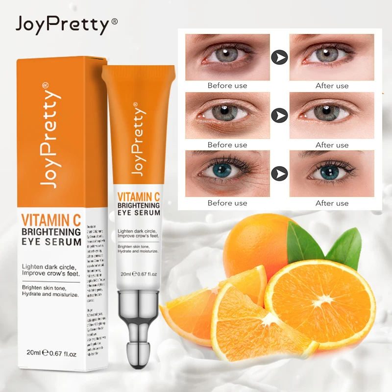 Осветляющая сыворотка для глаз с витамином С отвечает потребностям людей с проблемами кожи, такими как темные круги, мешки для глаз, тусклость, сухость и тонкие линии. Витамин С способен уменьшить темные круги и мешки под глазами, сделать вашу кожу такой же светлой, как и раньше. Текстура сыворотки легкая и влажная, но не жирная, которая легко впитывается.
