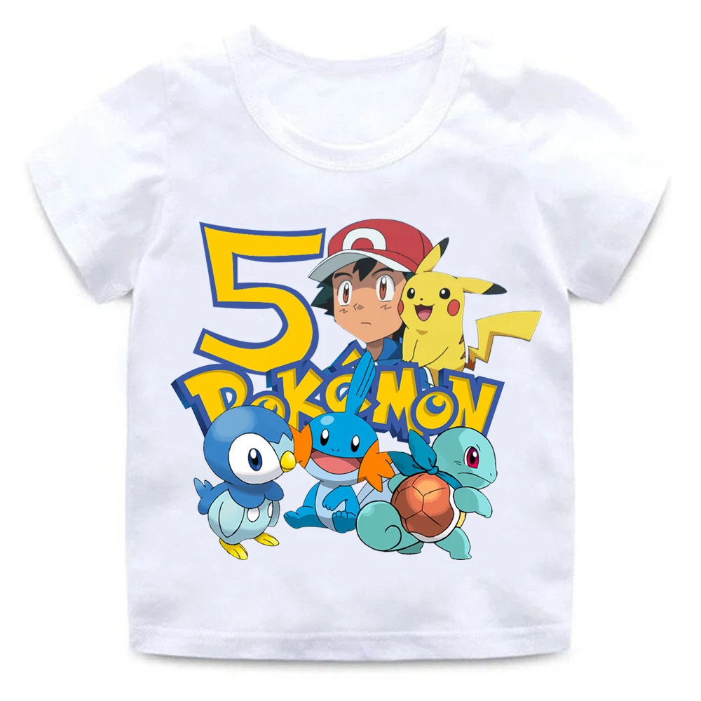 Рубашка для дня рождения с покемоном для мальчиков и девочек хлопко...
